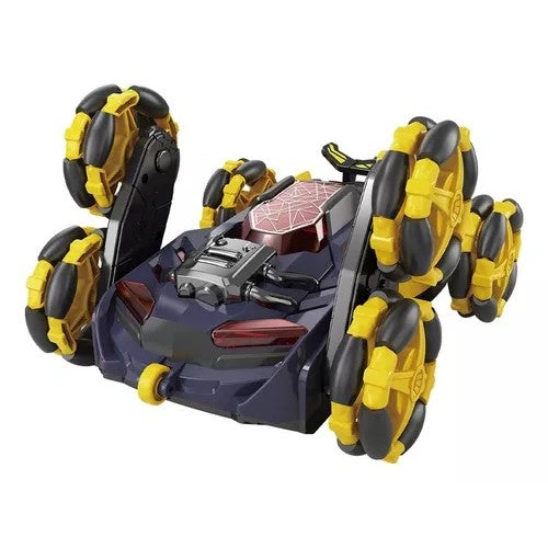 The Centre wheels can be raised or dropped to alter vehicle position and stance. The speed, stunts and rotation of this vehicle will surprise and delight. The remote control can be used to manually drive the car in almost any direction, angle or orientation. Set to auto spin, activate the smoke feature or turn off the music and LED lights increasing drive time. Drive time is around 20-30 mins with an estimated recharge time of 40min's.