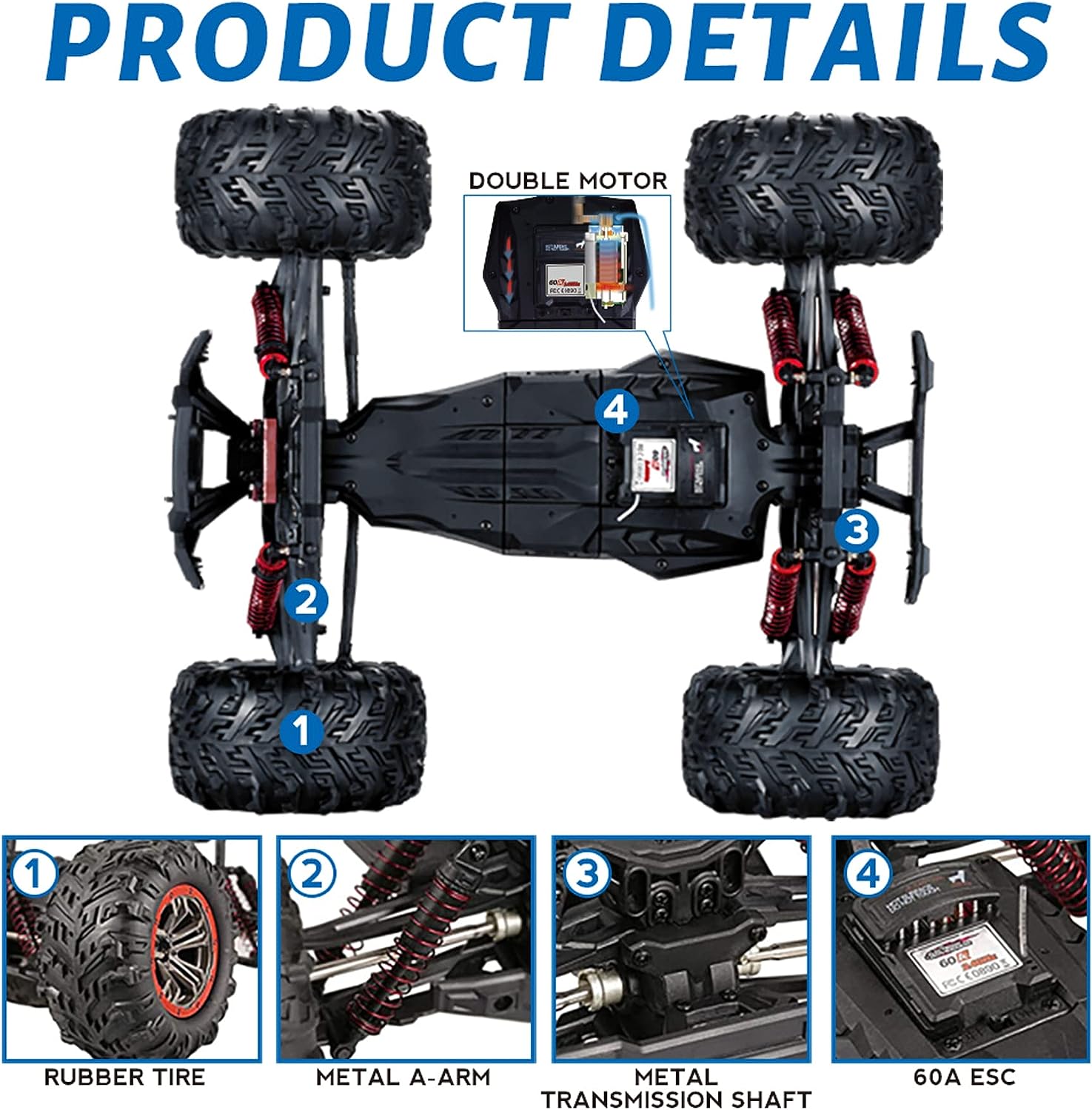 More Speed, More Fun: Easy to handle 30mph top speed; Dual brushed sports motors; 4 wheel drive;