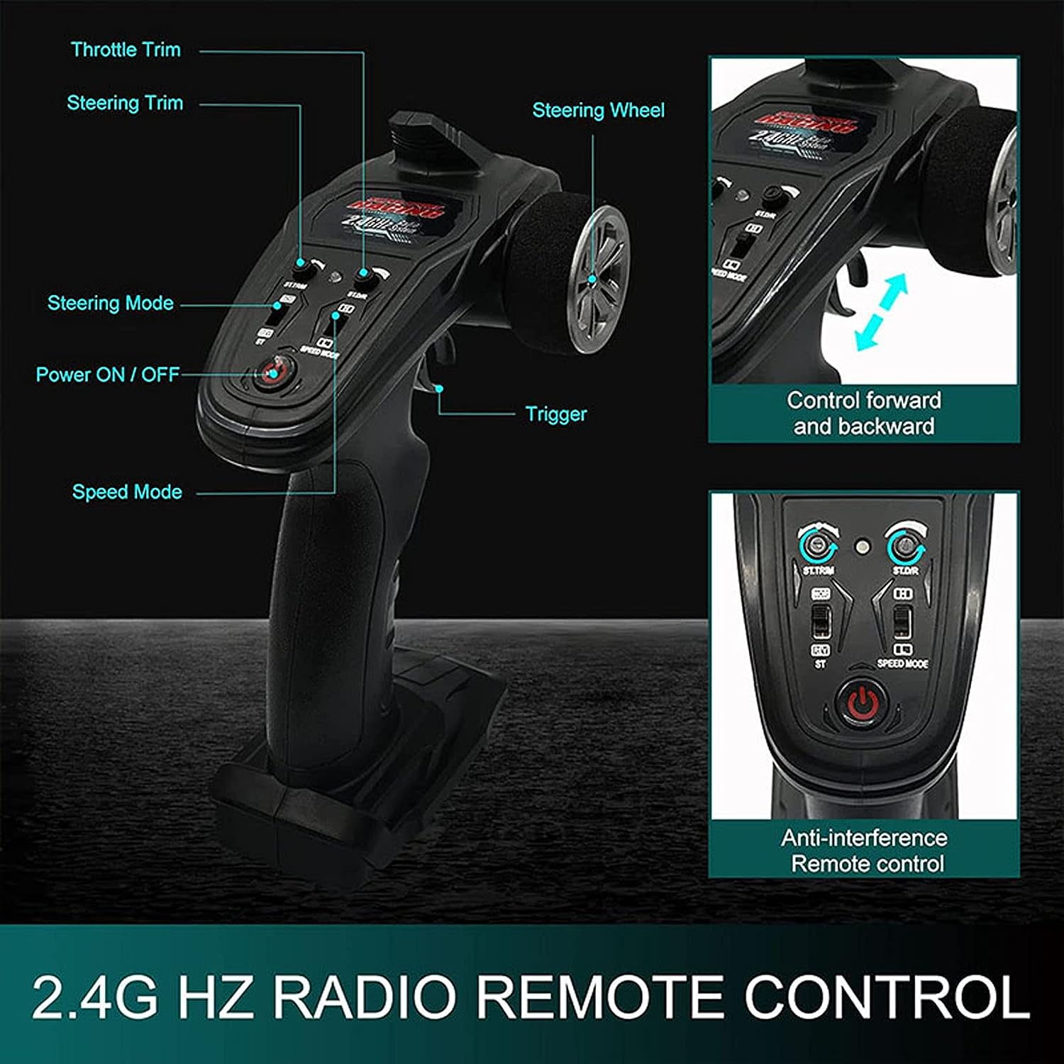 Left and right ratio adjustable. Direction fine-tuning correction, Anti-jamming protection, low voltage protection